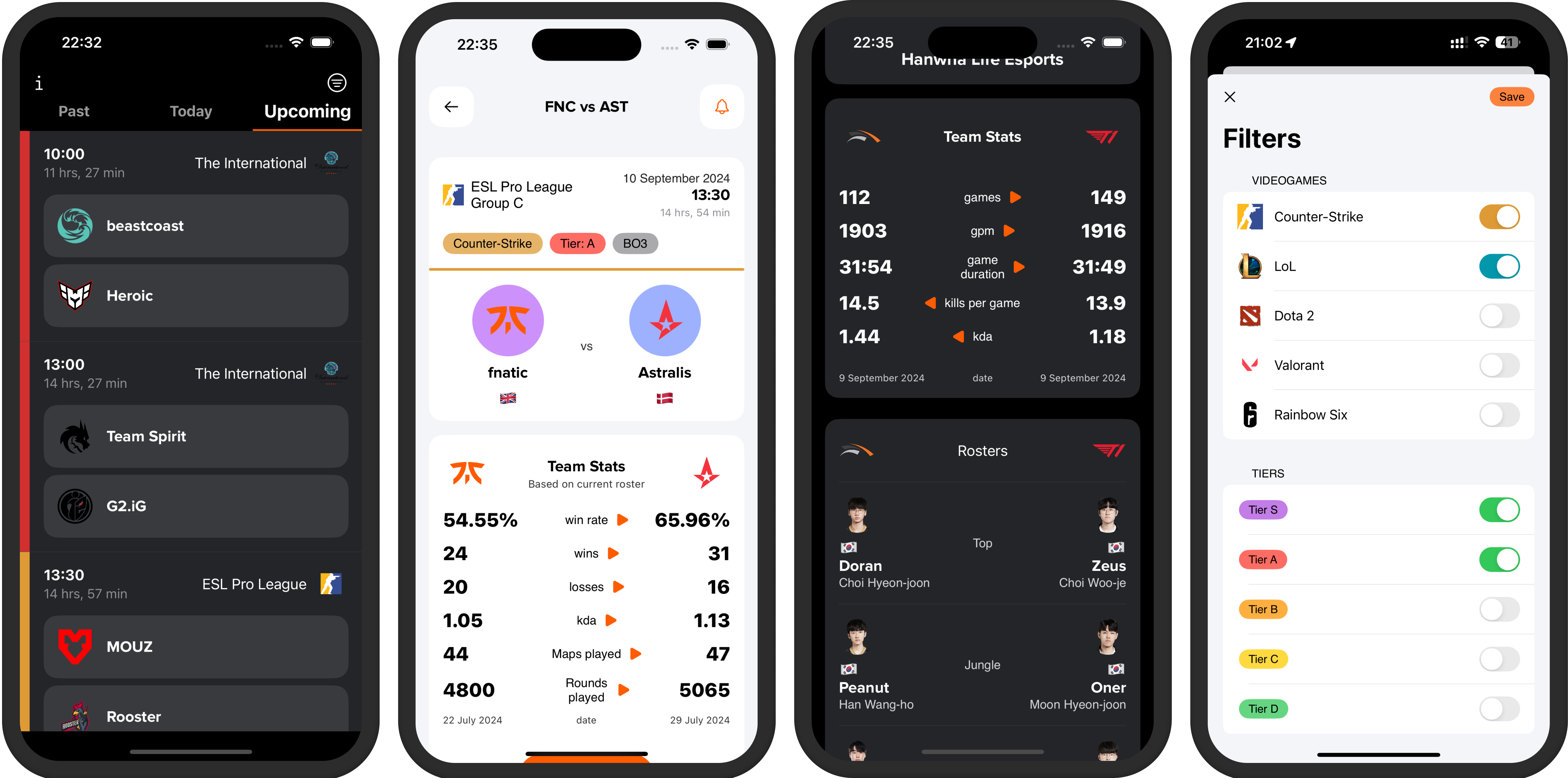 Gain insight on your favorite teams and players. (LoL, Counter-Strike)